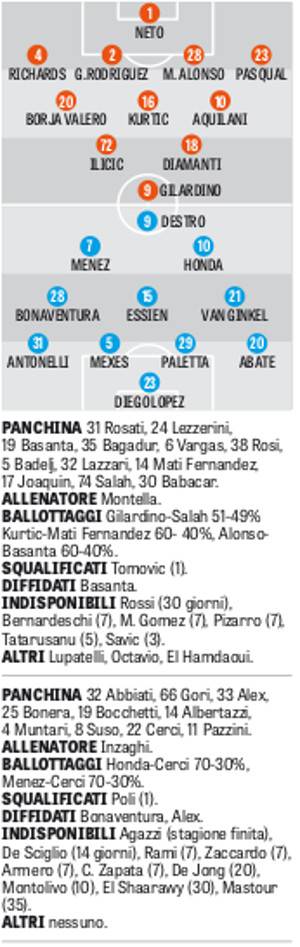 Fiorentina-Milan è uno dei posticipi del lunedì della 27.a giornata, divisa in scaglioni per via dei turni infrasettimanali di coppe internazionali. La formazione di Filippo Inzaghi se la vedrà contro quella dell’amico Vincenzo Montella allo stadio ‘Franchi’ a partire dalle ore 19. Ecco le probabili formazioni della sfida odierna secondo la Gazzetta dello Sport: i rossoneri rispolverano il 4-3-2-1, modulo ad Albero di Natale, così come la squadra di casa che punta sui due rientranti Diamanti-Gilardino.