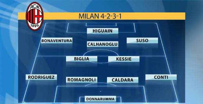 Potrebbe però variare qualcosa nella mente di Gattuso e nello schieramento dei suoi con l’arrivo di Higuain come centravanti: è possibile che il classico 4-3-3, il modulo quasi sempre utilizzato da ‘Rino’ lo scorso anno in gare ufficiali, possa essere sostituito o alternato al 4-2-3-1, lo stesso schieramento che invece la Juventus di Allegri ha provato maggiormente nelle ultime due stagioni. Per agevolare il ‘Pipita’, Gattuso starebbe pensando di provare a schierare alle sue spalle tre fantasisti e non solo due attaccanti esterni come lo scorso anno. In questo caso Suso resterebbe largo a destra, Bonaventura scalerebbe come esterno sinistro offensivo e Calhanoglu potrebbe giocare da trequartista centrale come ai tempi di Leverkusen per lanciare in maniera più limpida Higuain.