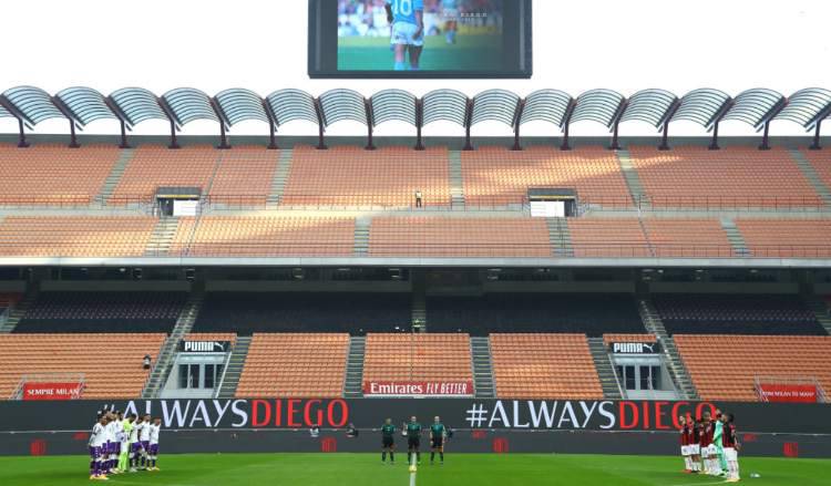 Dopo l’uscita e lo schieramento sul campo, minuto di silenzio per omaggiare Diego Armando Maradona.