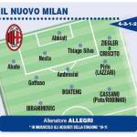 CALCIOMERCATO MILAN ALLEGRI FOTO – I due pareggi consecutivi non sono piaciuti al tecnico del Milan Massimiliano Allegri, che, come confermato da Tuttosport, starebbe pensando a una rivoluzione. Accantonato per il momento il 4-3-3, in attacco il tecnico toscano si affiderà al duo Ibrahimovic-Cassano con Boateng dietro le due punte. A centrocampo a rischio il posto di Pirlo soprattutto se dovesse arrivare Lazzari dal Cagliari. Confermati i due mastini Gattuso e Ambrosini. In difesa a sinistra novità importanti, Criscito o Ziegler saranno rossoneri, per questo non ci sarà spazio per Antonini. Allegri ha chiesto al gruppo di ritornare a marciare come prima, per questo prepara la sua rivoluzione. Ecco la foto.