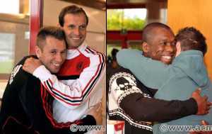 CASSANO MILANELLO – E’ tornato ieri a Milanello Antonio Cassano. Come previsto il fantasista barese ha salutato i compagni, spendendo abbracci e sorrisi per tutti, come da tradizione. Il giocatore non si è risparmiato battute esilaranti. Rivolgendosi a Pato, ad esempio, ha detto «Oh, questo ha fatto solo una partita ed è già titolare». Salta al collo di Ibra e lo svedese gli chiede se è dimagrito, ma lui: «Zlatan, di peso sono sempre uguale, non sono dimagrito». Siparietto anche con il cuoco: «Sei pronto per cucinare bene? Io sto alla grande, adesso devo solo mangiare». Ma la frase pià bella è per il dottor Tavana: «Questo qui mi ha salvato la vita». Di seguito le foto del grande ritorno prese dalla pagina ufficiale Facebook del Milan.