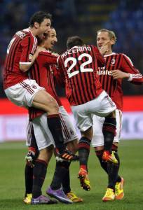PARTITA SENZA STORIA | Il Milan infila un secco tris e tiene il passo della Juventus capolista. Nel posticipo della 20^ giornata di Serie A, i rossoneri si impongono 3-0 sul Cagliari. Dopo una mezz’ora di studio e dominio territoriale inconcludente dei rossoneri, ad aprire le marcature e’ al 32′ Ibrahimovic, che insacca una magica punizione sotto il 7 dai 25 metri. Sette minuti dopo arriva il raddoppio con Nocerino su assist di petto, tanto per cambiare, del solito Ibrahimovic. Il 3-0 porta la firma di Ambrosini con un gran colpo d’esterno destro dal limite dell’area. Il MIlan si porta cosi’ a 43 punti in classifica, a -1 dalla Juventus e a +5 dall’Udinese terza.