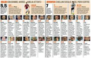 MILAN JUVENTUS VOTI PAGELLE – Di seguito potete trovare i voti e le pagelle di Milan-Juventus firmati Gazzetta dello Sport. I rossoneri perdono in casa contro la Vecchia Signora terminando il match con il risultato di 1 a 2. Buona prova di El Shaarawy, pericoloso in più occasioni e autore del gol dei rossoneri. Attorno alla sufficienza, ma senza fame ne lode, il resto del gruppo milanese. In casa Juventus, invece, prestazione super del neo-acquisto Caceres, protagonista assoluto del match con due reti, di cui la seconda davvero splendida.