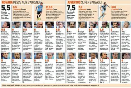 NOVARA JUVENTUS VOTI PAGELLE – Di seguito potete leggere i voti e le pagelle di Novara-Juventus firmati Gazzetta dello Sport. Sontuosa prestazione dei bianconeri che superano facilmente il Novara con il risultato di 0 a 4. Apre le marcature Vucinic poi il match è tutto in discesa. Prestazione super per Andrea Pirlo premiato con un bell’8 in pagella dalla Gazzetta. Per lui assist al bacio e tante occasioni da gol sfiorate. Grande prova anche di Vidal, uno dei simboli di questa Juventus, nonchè del duo d’attacco Mirko Vucinic e Marco Borriello.