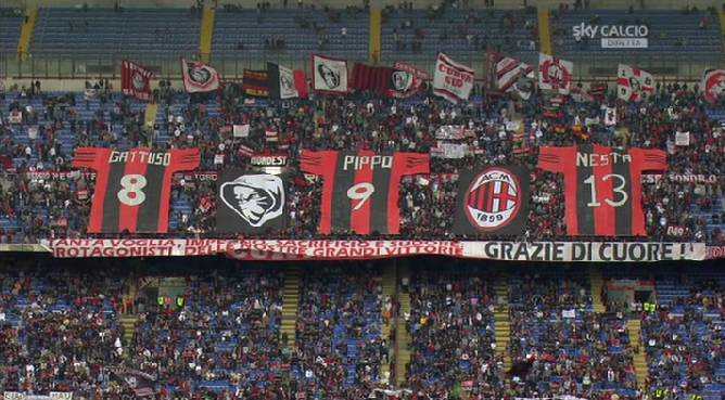 Milan-Novara, la coreografia per Nesta, Inzaghi e Gattuso… manca Seedorf – Foto 13/05/2012 - 14:00 di Redazione2 COREOGRAFIA – Di seguito la coreografia dello stadio San Siro dedicata ai tre addii per ora ufficiali, Gattuso, Inzaghi, Nesta. Manca però Seedorf che non è ancora ufficialmente “divorziato”… La redazione di Milanlive.it
