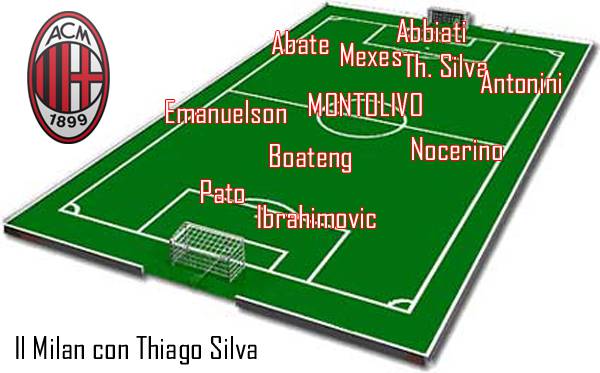 CALCIOMERCATO MILAN – Thiago Silva si o Thiago Silva no? E’ questo il dilemma che attanaglia i tifosi del Milan in queste ore ma soprattutto la dirigenza rossonera. L’ad Galliani dovrà a breve far fronte ad un’offerta concreta del Barcellona ma secondo alcuni sarebbe già arrivata e potrebbe essere monstre. Si parla infatti di una somma di 30 milioni di euro cash più il cartellino di Fabregas. La redazione di Milanlive.it ha voluto ipotizzare come potrebbe essere il Milan senza Thiago Silva (con l’aggiunta appunto dello spagnolo più Tevez, acquistabile grazie alla moneta incassata), confrontandolo con il Milan che trattiene il brasiliano e che dovrà affrontare un mercato di magra: a voi la parola su quale delle due squadre sia la più forte