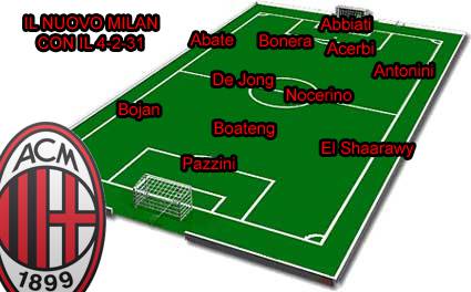 CALCIOMERCATO MILAN – Cambia il Milan e cambiano le disposizione tattiche degli 11 in campo. L’anno scorso i rossoneri hanno attuato quasi sempre il 4-3-1-2 con Ibrahimovic davanti, a spaziare sul fronte d’attacco, una seconda punta alle spalle dello svedese, e un trequartista. Quest’anno, Allegri, sembra propenso al 4-3-3, spostando di fatto in avanti Boateng ma non è da escludere che il recente sbarco a Milanello di De Jong possa aprire a nuove soluzioni. Il nazionale olandese ex City occupa di solito il ruolo di centrocampista davanti alla difesa ma non in solitaria. Ha quasi sempre giocato “a 2” e Allegri potrebbe ben pensare di cucirgli addosso un 4-2-3-1 con l’ex Citizens affiancato da uno a scelta fra Ambrosini-Nocerino-Flamini, Bojan ed El Shaarawy larghi sugli esterni e Boateng nella classica posizione di trequartista in mezzo alle due ali. In attacco, infine, Pazzini: vi piacerebbe vedere un Milan così disposto?