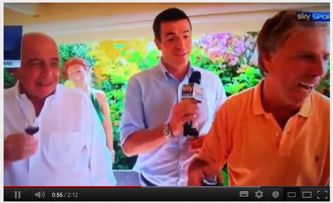 VIDEO GALLIANI PREZIOSI BRILLI – In occasione dell’ultimo sole estivo, l’amministratore delegato del Milan, Adriano Galliani, ha fatto visita nella sua Forte dei Marmi. Qui ha trovato la compagnia del presidente del Genoa, Enrico Preziosi, altro abituè della Versilia. I due, forse dopo qualche bicchiere di vino di troppo, hanno dato vita ad un simpatico siparietto cantando alcune canzoni di Califano. Chissà se al termine della mangiata c’è stato anche il tempo per parlare di qualche operazione di mercato, magari Antonelli…
