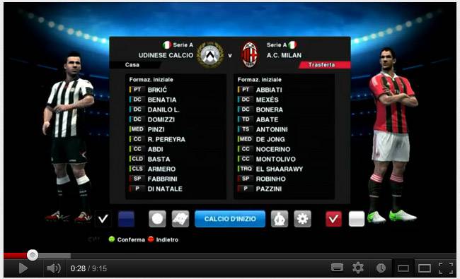 VIDEO PES 2013 UDINESE MILAN – Ancora poche ore poi il Milan scenderà in campo per la quarta giornata di Serie A. Alle ore 15.00, allo stadio Friuli, sono attesi i rossoneri per la prova del nove. Una sconfitta, infatti, potrebbe risultare disastrosa per la permanenza di Allegri a Milanello, una vittoria, all’opposto, potrebbe far schizzare alle stelle le motivazioni. Difficile prevedere come andrà il match ma c’è chi, su Youtube, si è divertito “simulando” la sfida in questione con PES 2013, nuovo capitolo uscito pochissimi giorni fa. In realtà la sfida è un po’ “falsata” visto che in campo, per il Milan, vi è Pato… Ma ora bando alle ciance e godetevi il match.