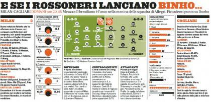 MILAN CAGLIARI PROBABILI FORMAZIONI – Di seguito potete trovare le probabili formazioni di Milan-Cagliari firmate da La Gazzetta dello Sport. Mister Allegri sembra intenzionato a confermare il 4-3-3, schema già utilizzato durante la recente trasferta di Udine. In attacco dovrebbero giocare Pazzini, El Shaarawy ed Emanuelson anche se non è da escludere una partenza dal primo minuto di Robinho, completamente recuperato. A centrocampo De Jong titolare dal primo minuto con Montolivo e Nocerino sugli interni. Infine in difesa spazio a Yepes e Bonera centrali con De Sciglio e Antonini sulle corsie.