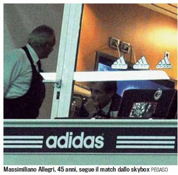 ALLEGRI SKY BOX FOTO – Si è posizionato nello Sky Box Adidas di San Siro l’allenatore del Milan, Massimiliano Allegri. Il tecnico rossonero, complice la squalifica dopo Udine, ha dovuto assistere al match dalla tribuna, diversamente da come è abituato, a pochi metri dal campo. Chi lo ha visionato però per tutta la gara, come ad esempio La Gazzetta dello Sport, racconta di un Allegri praticamente immobile e impassibile, sempre nella stessa posizione, seduto e pacato, per tutti i 90 minuti del match, anche alle due reti di El Shaarawy. Allegri, probabilmente, non si è voluto esaltare, conscio del fatto che la risalita del Milan è solo all’inizio…