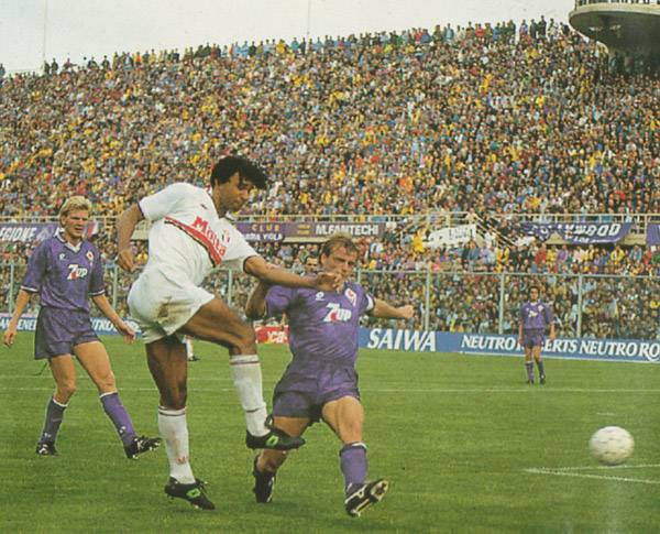 VIDEO MILAN STORY – Torna l’appuntamento con la storia di Milanlive.it. Quest’oggi la nostra redazione vuole riproporvi un match storico, avvenuto esattamente 20 anni fa, il 4 ottobre del 1992. In quel giorno, in Serie A, si tenne la sfida all’Artemio Franchi di Firenze fra la Fiorentina padrona di casa e il Milan. Una gara che si concluse con il risultato tennistico di 7 a 3 in favore dei rossoneri: doppietta di Gullit, Massaro e Van Basten, e rete di Lentini. Per la Viola le reti sono state siglate da Effenberg, Baiano e Di Mauro. Di seguito il video dello storico match.