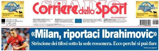 Corriere dello Sport: ritorno di Ibra al Milan, ecco perchè si può fare 14/10/2012 - 12:3414/10/2012 - 09:01 di Redazione2 CORRIERE DELLO SPORT – Sul quotidiano Corriere dello Sport, stamane, si torna a parlare del ritorno di Ibrahimovic al Milan. Secondo quanto raccolto dai colleghi di Roma il ritorno è possibile. La redazione di Milanlive.it