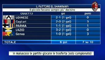 MILAN EL SHAARAWY – El Shaarawy è il Milan e lo testimoniano i numeri di queste prime uscite stagionali. Il Faraone ha totalizzato fino ad ora 6 gol ma soprattutto, grazie alle sue reti e alle sue performance, ha permesso al Milan di ottenere ben 7 punti sui 10 totali fin qui conquistati dai vice-campioni d’Italia. Pochi dubbi quindi, El Shaarawy è l’attuale leader non soltanto dell’attacco dei rossoneri quanto dell’intera squadra. Niente male per un giovane talento di soli 20 anni che l’anno scorso sembrava sul punto della cessione in prestito…