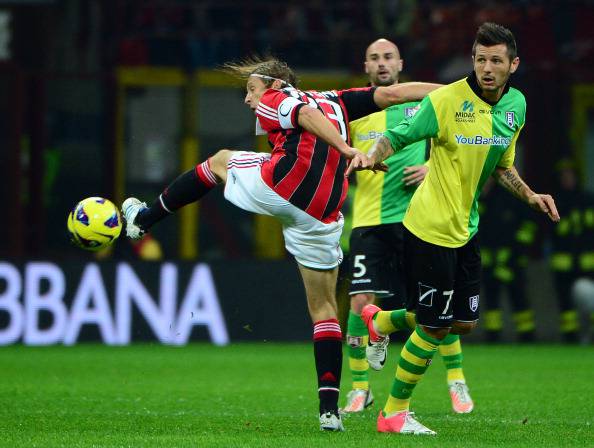 MILAN CHIEVO PRIMO TEMPO – Si è concluso pochi istanti fa il primo tempo di Milan-Chievo, anticipo delle 18.00 dell’undicesima giornata di Serie A, con il risultato di 3 a 1, reti di Emanuelson, Montolivo e Bojan per il Milan e di Pellissier per i veneti. Di seguito i voti degli 11 rossoneri in campo in questi primi 45 minuti di gioco.