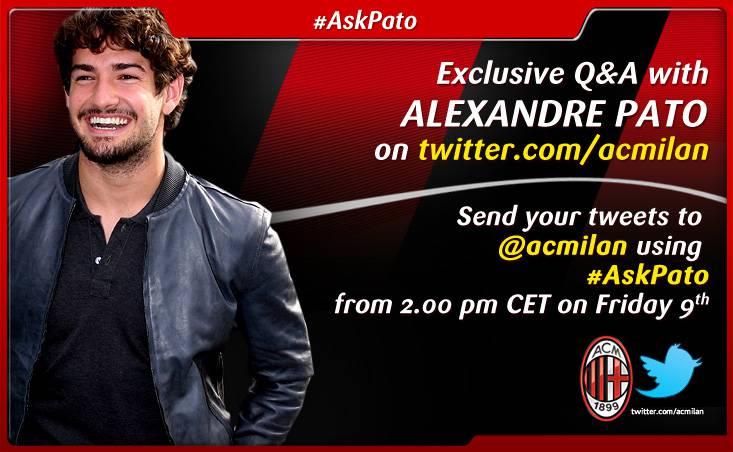 PATO TWITTER – Interessante nuova iniziativa social del Milan. Attraverso il canale Twitter ufficiale rossonero sarà possibile parlare direttamente con Alexandre Pato. Di seguito il comunicato ufficiale rossonero: “Il brasiliano risponderà alle domande e si racconterà in diretta ai follower rossoneri a partire dalle 14.00 circa. Per partecipare basterà inviare un tweet all’account rossonero @acmilan utilizzando l’hashtag dedicato all’iniziativa, #askPato. Vi aspettiamo su twitter! #forzaMilan e #askPato!”.