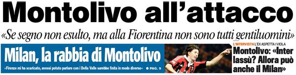 RASSEGNA STAMPA MILAN FOTO – Di seguito potete trovare i principali titoli dei tre quotidiani sportivi, La Gazzetta dello Sport, Corriere dello Sport e Tuttosport, riguardanti naturalmente il nostro Milan. I tre quotidiani sono concentrati all’unisono sulle dichiarazioni di ieri di Riccardo Montolivo in occasione della presentazione del suo nuovo sito internet. Il centrocampista ricorda con rammarico il divorzio dalla Fiorentina e il mancato vis a vis con i Della Valle che avrebbe potuto, forse, far finire le cose in maniera diversa.