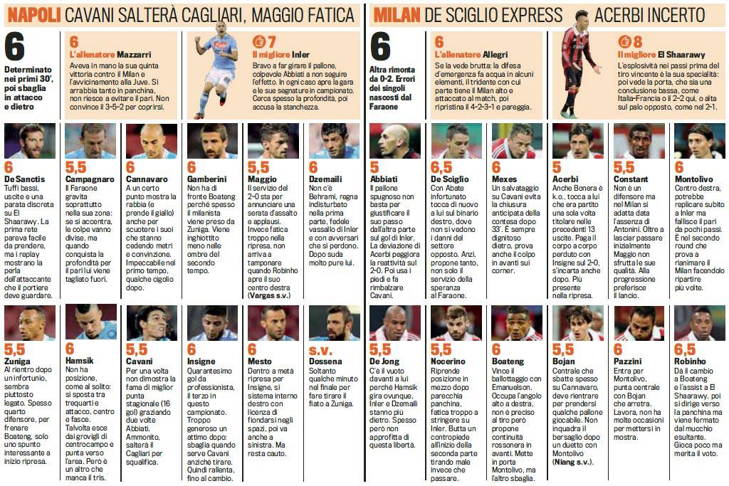 Napoli-Milan, voti e pagelle Gazzetta dello Sport: esplosivo El Shaarawy! Bene anche Robinho – Foto
