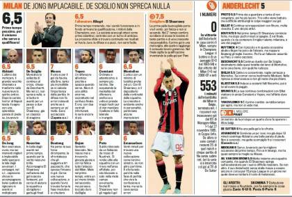 ANDERLECHT MILAN VOTI PAGELLE GAZZETTA – Di seguito potete visionare i voti e le pagelle Gazzetta dello Sport relativi alla sfida fra il Milan e l’Anderlecht, gara valevole per il quinto turno dei Gironi di Champions League, giocatasi ieri sera a Bruxelles alle ore 20.45, e conclusasi con il risultato di 3 a 1 in favore dei rossoneri. Il migliore dell’incontro in assoluto è stato El Shaarawy, premiato con un bel 7,5 e per l’ennesima volta in gol ieri sera e autore di un grande assist per Pato. Premiato naturalmente anche Mexes, autore di una rovesciata fantastica da fuori area.