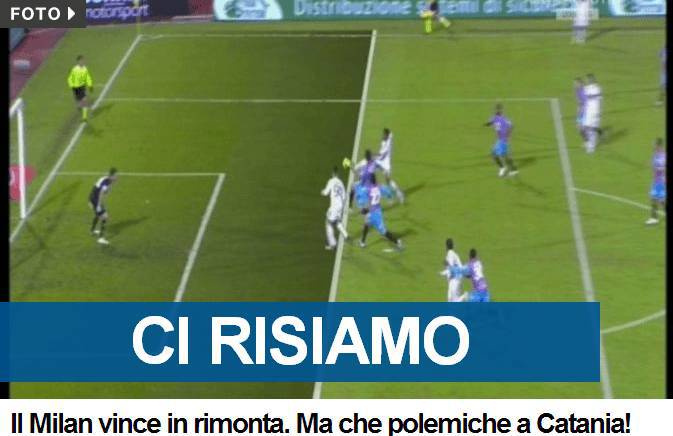 FOTO TUTTOSPORT MILAN CATANIA – Nella home page del sito del noto quotidiano torinese Tuttosport, molto legato alla Juventus, compare un’immagine molto polemica nei confronti del Milan per il goal irregolare messo a segno questa sera a Catania da El Shaarawy.