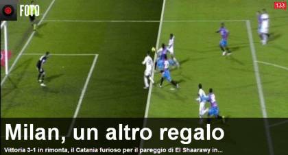 FOTO – Anche il Corriere dello Sport commenta il Milan: “Un altro regalo”… 01/12/2012 - 02:1001/12/2012 - 01:00 di Matteo B. FOTO CORRIERE DELLO SPORT MILAN – Anche il Corriere dello Sport nella home page del suo sito web ha sottolineato l’errore del guardalinee nell’occasione del goal di El Shaarawy, che è valso il Milan il momentaneo pareggio a Catania.