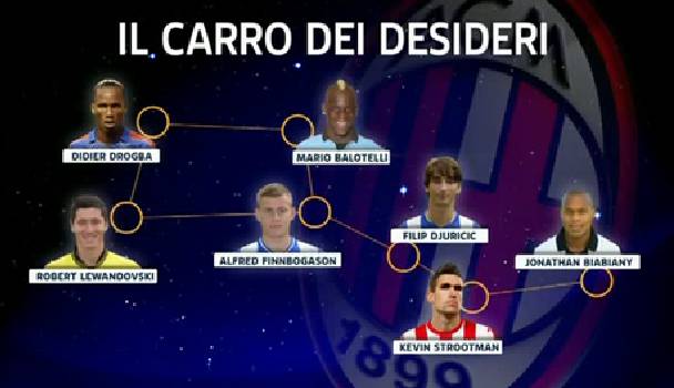 CALCIOMERCATO MILAN – L’hanno ribattezzato il Carro dei desideri. La redazione di Sky Sport 24, prendendo spunto dalla nota costellazione, Carro maggiore, ha utilizzato le stelle per elencare i sette grandi obiettivi di mercato di casa Milan in vista di gennaio, finestra di riparazione che si è improvvisamente scaldata dopo le recenti offerte per Robinho e Pato. In ballo i nomi di Balotelli, Drogba e Lewandowski, oltre che i due “sconosciuti” Finbogarson e Djuricic, entrambi in forza all’Heerenveen di Marco Van Basten e consigliati dal Cigno all’amico Berlusconi. Infine, due centrocampisti come Strootman e Biabiany. Il regalo di Natale rossonero potrebbe essere in questo mini elenco…