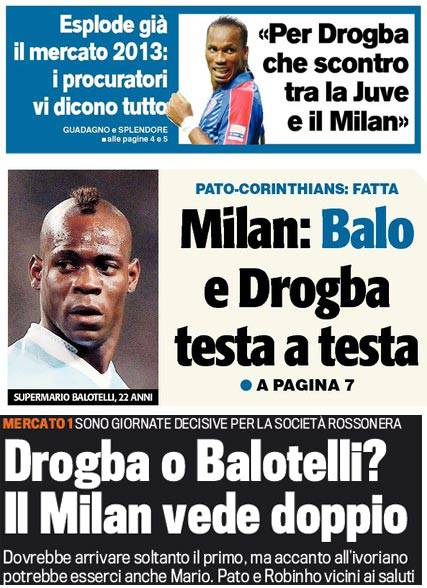 Rassegna stampa Milan: Drogba o Balotelli in entrata, Pato e Robinho ceduti – Foto 02/01/2013 - 07:09 di Redazione2 RASSEGNA STAMPA MILAN FOTO – Di seguito potete trovare i principali titoli dei tre quotidiani sportivi, La Gazzetta dello Sport, Corriere dello Sport e Tuttosport, riguardanti naturalmente il nostro Milan. La redazione di Milanlive.it