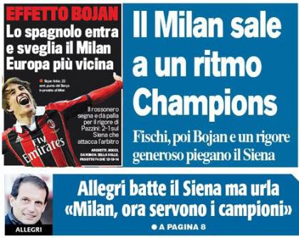 Home » Milan News » Rassegna stampa Milan: Il Milan sale al ritmo Champions ma Allegri chiede campioni – Foto