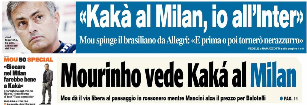 Rassegna stampa Milan: Mourinho manda Kakà al Milan, si alza il prezzo di Balotelli – Foto 27/01/2013 - 15:2326/01/2013 - 07:10 di Redazione2 RASSEGNA STAMPA MILAN FOTO – Di seguito potete trovare i principali titoli dei tre quotidiani sportivi, La Gazzetta dello Sport, Corriere dello Sport e Tuttosport, riguardanti naturalmente il nostro Milan. La redazione di Milanlive.it