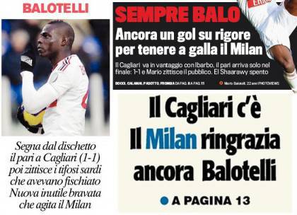 Rassegna stampa Milan: il Milan ringrazia Balotelli ma Super Mario fa agitare i rossoneri… – Foto 14/02/2013 - 15:5811/02/2013 - 07:16 di Redazione2 RASSEGNA STAMPA MILAN FOTO – Di seguito potete trovare i principali titoli dei tre quotidiani sportivi, La Gazzetta dello Sport, Corriere dello Sport e Tuttosport, riguardanti naturalmente il nostro Milan. La redazione di Milanlive.it