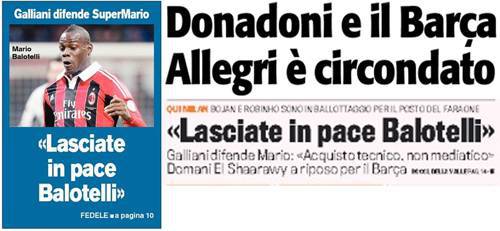 Rassegna stampa Milan: Allegri fra Donadoni e il Barca, lasciate in pace Balotelli, El Sha a riposo – Foto 14/02/2013 - 15:5614/02/2013 - 07:06 di Redazione2 RASSEGNA STAMPA MILAN FOTO – Di seguito potete trovare i principali titoli dei tre quotidiani sportivi, La Gazzetta dello Sport, Corriere dello Sport e Tuttosport, riguardanti naturalmente il nostro Milan. La redazione di Milanlive.it