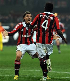 BOATENG 8: Sblocca la partita con un gran gol che fa esplodere il S.Siro. Era dalla gara contro il Catania in campionato che non segnava, ha aspettato il momento giusto per ritornare in gol. Al 57′ la svolta: schema su punizione con Constant che tocca il pallone per liberare al tiro Montolivo, pallone che dopo due rimpalli finisce sui piedi di PRINCE che di prima intenzione batte Valdes sotto la Curva Sud rossonera. A parte il gol, interpreta alla grande il ruolo d’esterno destro con estrema abnegazione sacrificandosi e aiutando sempre in fase difensiva Abate.