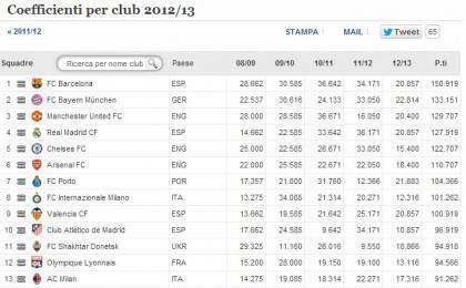 COEFFICIENTI STAGIONALI PER CLUB 2012/2013