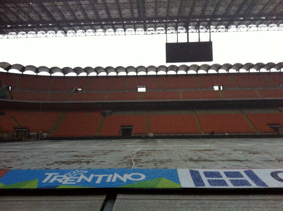 INTER MILAN – Il collega di Sky Sport Matteo Barzaghi, ha pubblicato poco fa sul proprio profilo Twitter la foto dello stadio San Siro che mostra le condizioni attuali del campo Meazza vista la nevicata che si è abbattuta su Milano da questa mattina. I teloni stanno proteggendo il manto erboso.