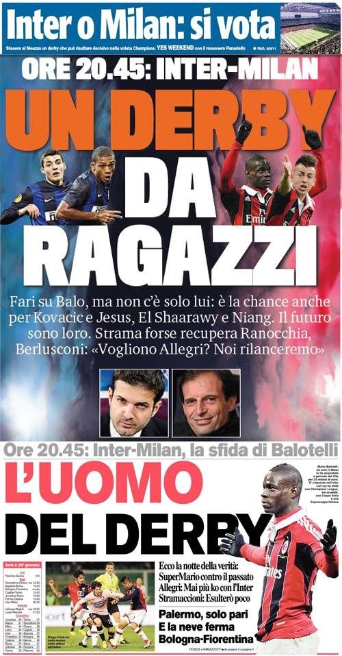 Rassegna stampa Milan: un derby da ragazzi, Balo uomo del derby, si vota – Foto 26/02/2013 - 19:1724/02/2013 - 08:02 di Redazione2 RASSEGNA STAMPA MILAN FOTO – Di seguito potete trovare i principali titoli dei tre quotidiani sportivi, La Gazzetta dello Sport, Corriere dello Sport e Tuttosport, riguardanti naturalmente il nostro Milan. La redazione di Milanlive.it