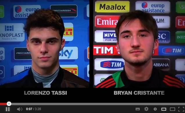 VIDEO – Tassi vs Cristante: intervista doppia ai talenti di Inter e Milan 01/03/2013 - 20:11 di Matteo B. VIDEO MILAN CRISTANTE – Vi proponiamo il video dell’intervista doppia che ha come protagonisti Lorenzo Tassi e Bryan Cristante, talentuosi centrocampisti rispettivamente di Inter e Milan.