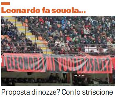 MILAN PALERMO – Show in campo durante Milan-Palermo ma anche sugli spalti. In occasione del match di ieri a San Siro non sono mancati striscioni decisamente divertenti o per lo meno particolari, come quello di un tifoso che, imitando Leonardo, ha chiesto la mano alla propria amata tramite un super striscione. C’è invece qualche tifoso polemico che ha ricordato la disfatta del Camp Nou scrivendo «Meglio la frutta di stagione. Martedì quattro pere ci sono costate care». Anche i bambini ci hanno messo del loro intonando «Serie B, Serie B», naturalmente riferito al Palermo: come direbbe in questo caso il buon Ezio Greggio, “Sono ragazzi…”.