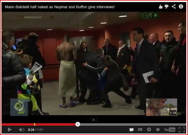 VIDEO GIORNALISTI BALOTELLI – Simpatico video direttamente da Brasile-Italia. Al termine dell’amichevole i giornalisti stavano intervistando i vari protagonisti del match e fra la folla di addetti ai lavori e non, ecco passare Super Mario Balotelli, a torso nudo, coperto solo con un asciugamano e in ciabatte…