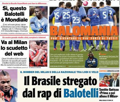 Rassegna stampa Milan: E’ Balomani! Gattuso abbraccia Allegri, al Milan lo scudetto del web – Foto 25/03/2013 - 15:5623/03/2013 - 06:57 di Redazione2 RASSEGNA STAMPA MILAN FOTO – Di seguito potete trovare i principali titoli dei tre quotidiani sportivi, La Gazzetta dello Sport, Corriere dello Sport e Tuttosport, riguardanti naturalmente il nostro Milan. La redazione di Milanlive.it