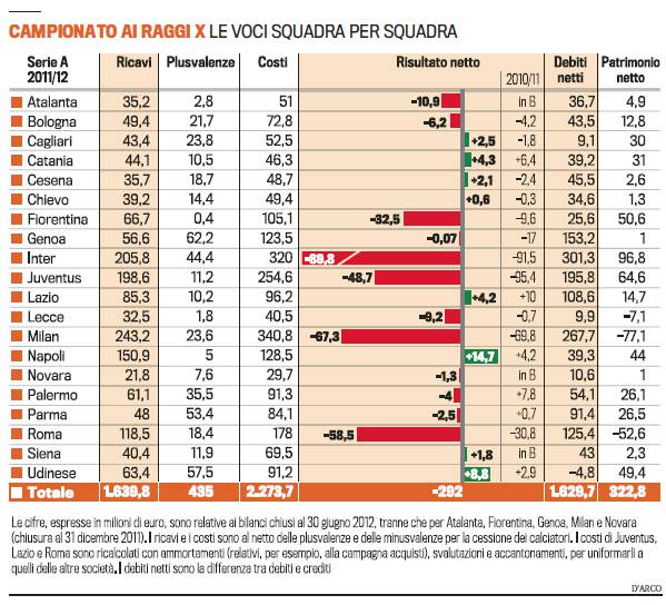 Bilanci 2012 Serie A: Milan verso il pareggio, Inter disastrosa! – Foto