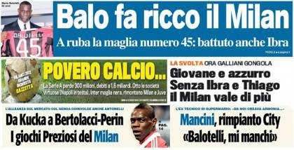 Rassegna stampa Milan: la maglia di Balo va a ruba, Milan più ricco, nuovi “giochi Preziosi” in estate… – Foto 30/03/2013 - 11:0829/03/2013 - 07:04 di Redazione2 RASSEGNA STAMPA MILAN FOTO – Di seguito potete trovare i principali titoli dei tre quotidiani sportivi, La Gazzetta dello Sport, Corriere dello Sport e Tuttosport, riguardanti naturalmente il nostro Milan. La redazione di Milanlive.it