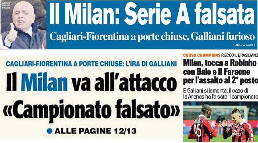 Rassegna stampa Milan: Galliani furioso “Campionato falsato!”. Contro il Chievo chance per Binho? – Foto 03/04/2013 - 16:4830/03/2013 - 07:00 di Redazione2 RASSEGNA STAMPA MILAN FOTO – Di seguito potete trovare i principali titoli dei tre quotidiani sportivi, La Gazzetta dello Sport, Corriere dello Sport e Tuttosport, riguardanti naturalmente il nostro Milan. La redazione di Milanlive.it