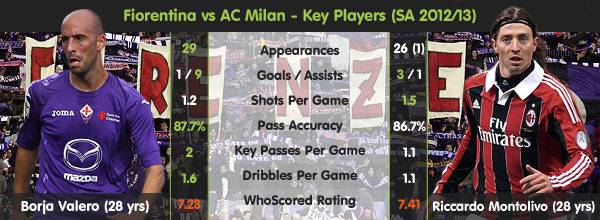 FIORENTINA MILAN – Il noto sito di statistiche calcistiche Whoscored.com ha individuato i due probabili giocatori chiave dell’attesissima Fiorentina-Milan, sfida che andrà in scena domani mezzogiorno alle ore 12.30. Secondo Whoscored.com la partita potrebbe decidersi a centrocampo, individuando in Borja Valero per la Viola e in Riccardo Montolivo per il Milan, i due “key players”.