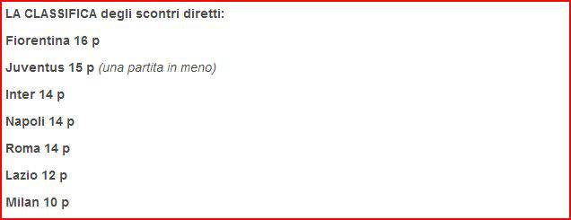 LA CLASSIFICA degli scontri diretti: