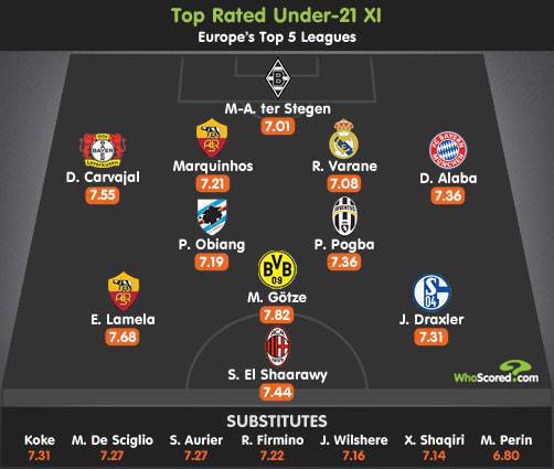 TOP 11 UNDER 21 TALENTI – La redazione di Whoscored.com ha stilato la top 11 dei talenti Under-21 d’Europa in base a dati e statistiche come gol, assist, minuti in campo, tiri e quant’altro. Presente, naturalmente, il nostro Milan, con El Shaarawy punta di diamante. Tanti gioielli della Serie A in squadra oltre al nostro Faraone come Pogba della Juve, Lamela e Marquinhos della Roma e infine Obiang della Samp.