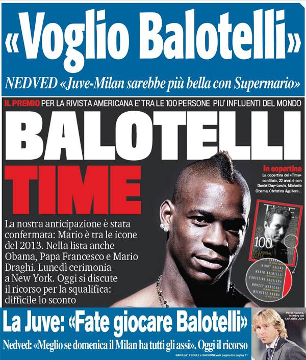 Rassegna stampa Milan: Balotelli Time! La Juve chiama Super Mario… – Foto 23/04/2013 - 18:3119/04/2013 - 06:41 di Redazione2 RASSEGNA STAMPA MILAN FOTO – Di seguito potete trovare i principali titoli dei tre quotidiani sportivi, La Gazzetta dello Sport, Corriere dello Sport e Tuttosport, riguardanti naturalmente il nostro Milan. La redazione di Milanlive.it