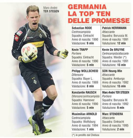 CALCIOMERCATO MILAN – Il Corriere dello Sport ha pubblicato stamane la top 10 dei nuovi talenti tedeschi pronti a sbocciare, i futuri Draxler, Goetze, Reus, Muller, Hummels e via discorrendo. Una top 10 di gioielli purissimi fra cui un giocatore che sarebbe finito nel mirino del Milan. Stiamo parlando precisamente di Patrick Hermann, attaccante del Borussia M., classe 1991, che ha una valutazione di circa 12 milioni di euro e che i rossoneri starebbero appunto seguendo.