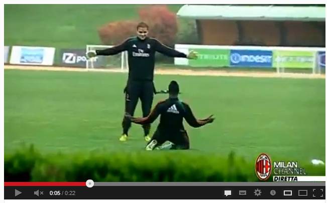 VIDEO – Simpatico siparietto a Milanello con protagonista il giovane attaccante del Milan, M’Baye Niang. Il talentuoso francese, ancora in cerca del primo gol in campionato, ha fatto ieri delle prove di esultanza assieme all’amico e compagno di squadra, Gabriel. Una scenetta davvero simpatica che potete trovare più in basso.