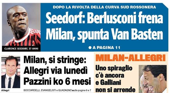 Home » Milan News » I titoli Gazzetta, CorSport e Tuttosport: Milan-Allegri, c’è ancora uno spiraglio, Berlusconi frena, Galliani non si arrende – Foto