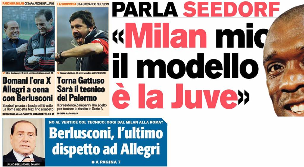 I titoli Gazzetta, CorSport e Tuttosport: Seedorf vuole un Milan stile Juve, giovedì la cena verità, nuovo sgarbo di Berlusconi – Foto